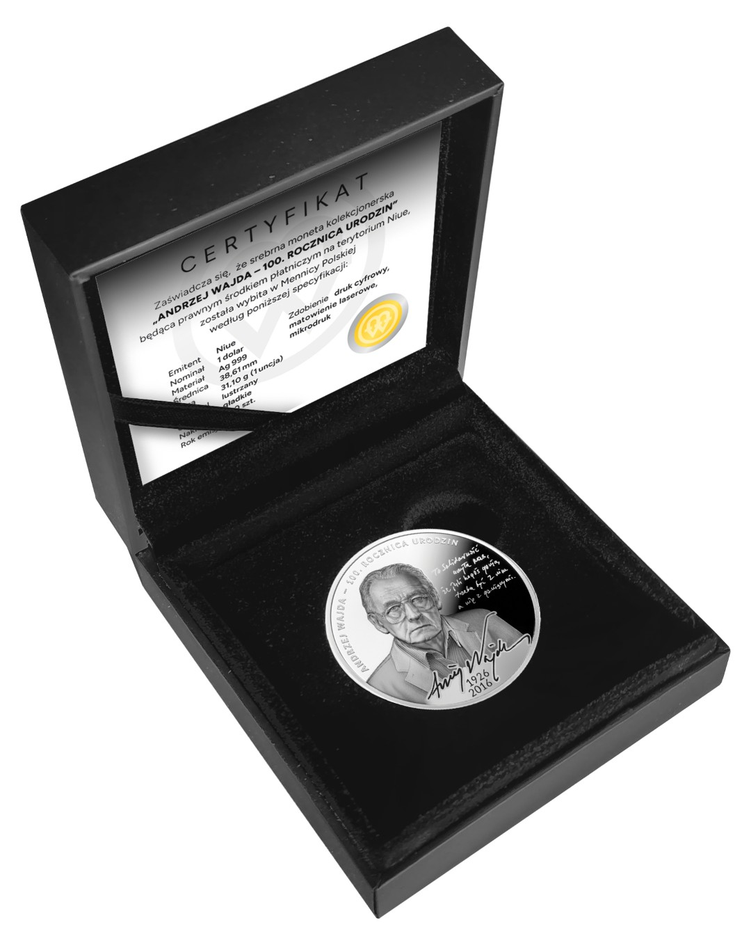 W Roku Andrzeja Wajdy Mennica Polska może oddać hołd twórcy w trwałej formie srebrnej monety. Dzięki wsparciu Pani Krystyny Zachwatowicz-Wajdy powstał projekt osobisty, w którym portret reżysera współgra z jego własnymi słowami. To moneta, która opowiada ważną historię – podobnie jak filmy Mistrza.